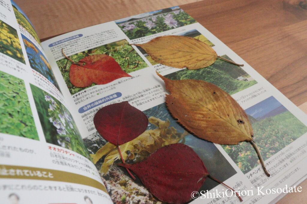 ペーパータオルで水分を拭き取った後に、図鑑などに挟みます。